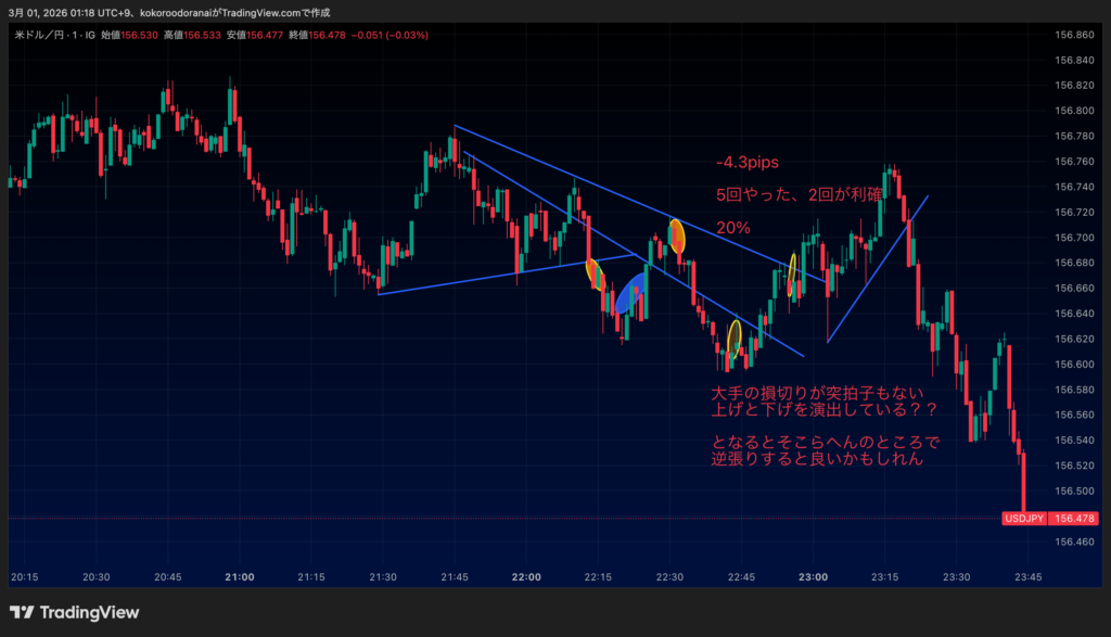 そしたら店主がなんであんなところでエントリーしてロスったかがわかるはず。