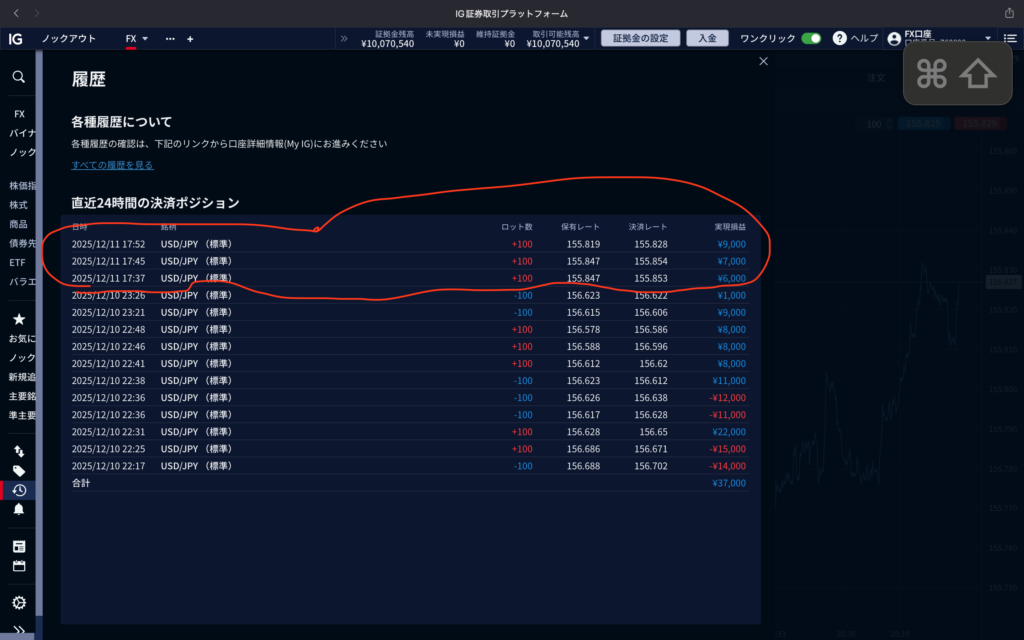 結構トレンドの直前でも入れていたりするので、やはりもう少し伸ばしてもいいかもしれないと思いながらロンドンは一旦手仕舞いでございます。