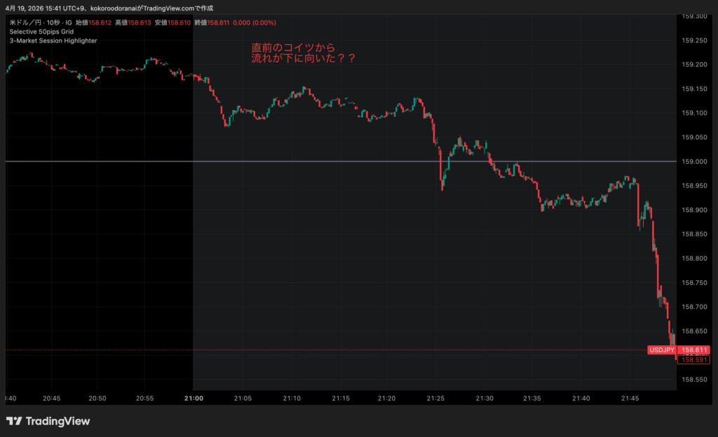 直前の動き的にここいらで下落するのかなーなんて思っていた矢先にこの急落。ちょっと思ってたのと違う💦