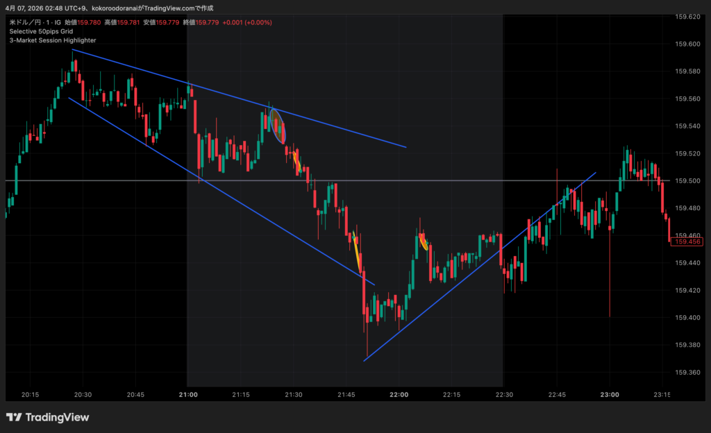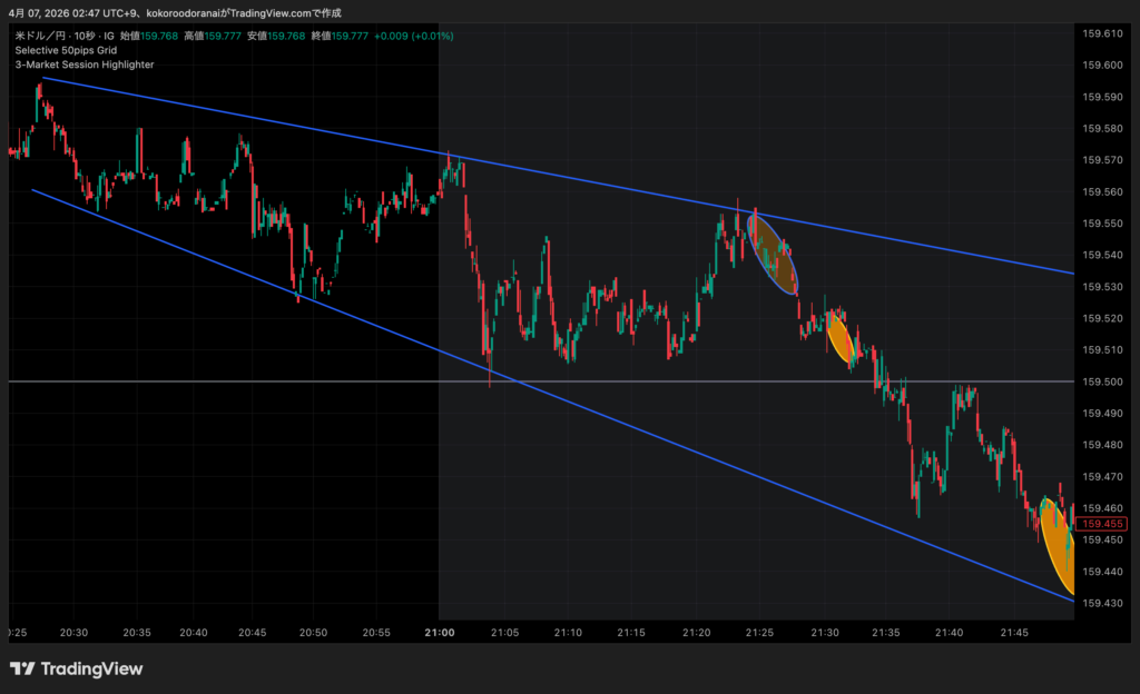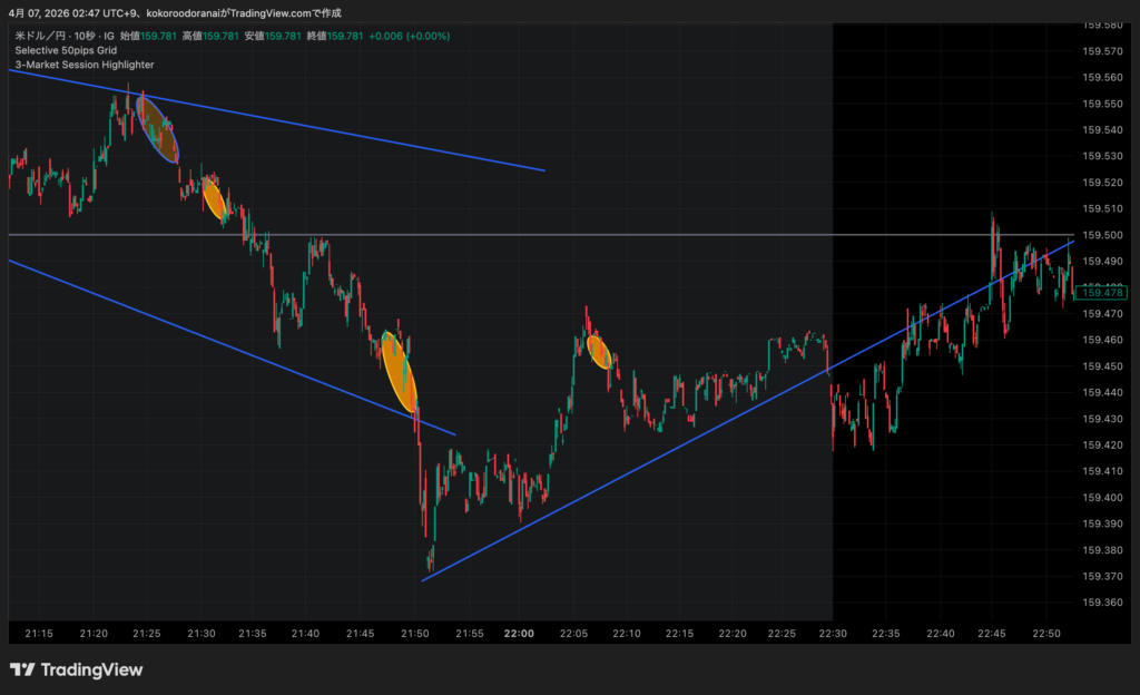 んで後半ってかラストは22:00の後くらいの要線が連続して出たところの一休みしたところでエントリー。