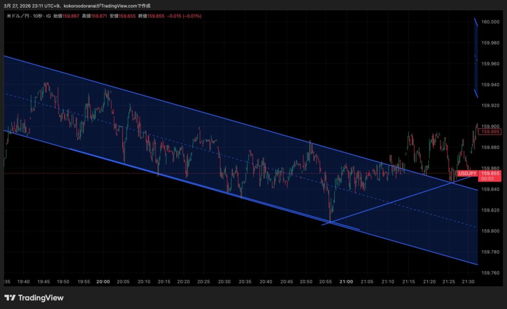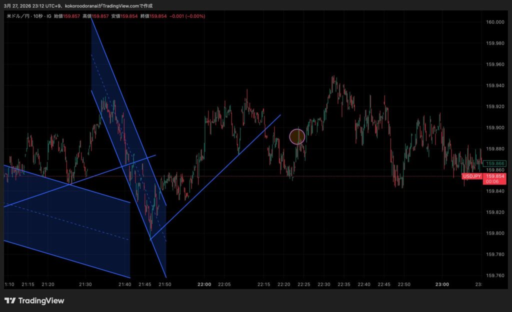 なんか10秒足だけで判断するとボラティリティが少ない時には形が安定しないと言いますかね、リアルに見てると穴が空いて飛び飛びになることが多いんすわ。そうなるとプライスアクション的に判断がしづらいんでじわじわと形作られる1分足でのトレードの方が時間はかかるけど、まあまあの利益が取れそうな感じがするぞ。