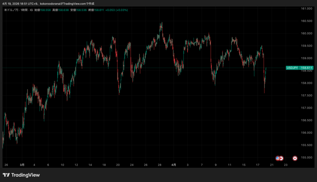 基本的には157~160円くらいに大口が価格帯を抑えようとしていたんかね、有事なだけにこういう時は停滞しがち。